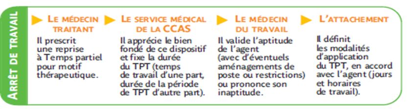Lorsque le TPT est accordé, l’assuré doit impérativement et immédiatement remettre une copie de cette notification de la médecine conseil de la CCAS à son attachement, de façon que l’organisation pratique soit décidée avec son responsable de ressources humaines et son responsable hiérarchique.